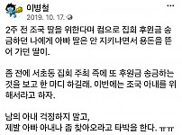 2019년 10월 조국 전 법무장관 수호를 위한 서초집회가 한창일 무렵 고 이병철씨가 자신의 트윗에 올린 글. 글을 쓰기 2주 전 자신이 조국 딸 조민양에게 후원금을 송금했다는 내…