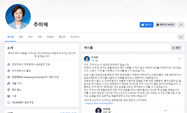 추미애 전 법무장관은 지난 7월 3일 자신의 페이스북을 통해 자신이 법무부장관 사직 당시 문재인 대통령으로부터 해임당했다는 취지의 글을 남겼다.