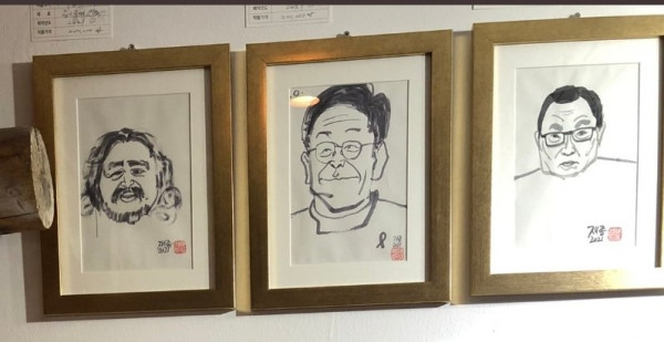이 작품(아래) 역시 이재명 경기도 지사를 작품의 최 중앙에 배치하고 이해찬 전 당대표와 김어준씨를 좌우레 배치하는 구도로 되어 있다. 반면 정작 전시회의 주인공인 노무현 대통령은 오른쪽 구석에 배치되었고, 그것도 측면의 모습만을 담고 있다. 또한 이재명 경기도 지사와 대권경쟁을 하고 있는 이낙연 전 당대표나 측근 인물들은 배제되어 있어, 몇몇 SNS 사용자들 사이에서 이 작품 역시 이재명 경기도 지사를 올려세우기 위한 것이라는 주장들이 일고 있다. 청원닷컴은 이에 대해서도 독자들에게 판단을 맡기기로 한다.[사진=트윗캡처]