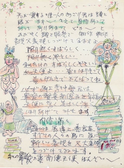 화가 이중섭이 사랑하는 여인 야마모토 마사코에게 보낸 사랑편지. 엽서지에 그림과 글을 함께 담아 애틋한 마음을 보냈다고 합니다. 야마모토 마사코는 후에 이중섭과 결혼합니다. 편지화라는 새로운 장르가 열린 셈이기도 하네요.