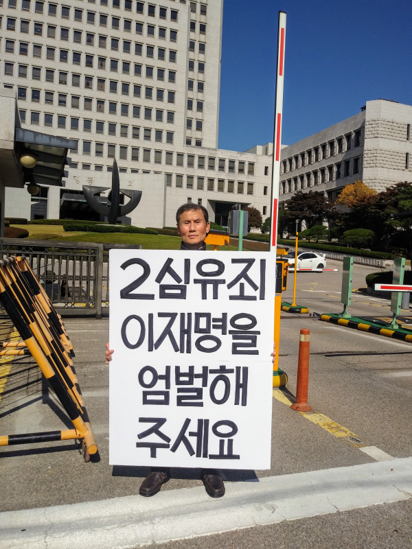 다음카페 '젠틀재인'의 한 회원(닉네임 포에버54)이 카페글을 통해 자신이 10월 30일 12시부터 13시까지 대법원 정문앞에서 이재명 경기지사의 2심유죄 엄벌을 요구하는 1인 시위를 가졌다고 밝혔다.