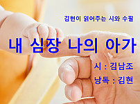시 '내 심장 나의 아가' 는 출판사 문학수첩과 시인 김남조님의 허락을 얻어 낭송하였습니다. 출판사와 시인 김남조님께 감사드립니다. 인용한 도서는 다음과 같습니다. 도서 제목 : …