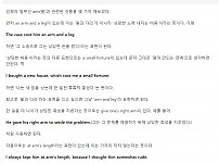 인체의 일부인 arm(팔)과 관련된 것들을 몇 가지 해보겠다. 먼저 an arm and a leg이 있는데 이는 ‘팔과 다리’가 아니라 ‘상당한 노력 내지는 비용’이라는 뜻이다. …