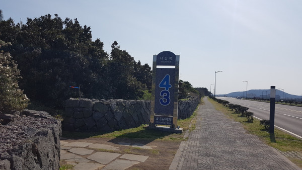 올레길은 해변 모래사장으로 이어지다가 도로로 연결되었다. 도로변 소나무 군락 터 한쪽에 터진목 4.3 희생자 위령비가 서 있었다. 육지와 바다가 만나는 터진 이곳에서 죄 없는 양민들이 무참하게 희생당했다고 한다. 성산일출봉이 당시의 참상을 지켜봤으리라는 생각이 드니 처연하기만 했다. 아픈 역사를 절대로 외면하지 말고 껴안아야 할 것 같다.