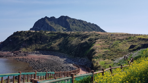 1코스에서 해변을 따라 성산일출봉을 두고 왼쪽에서 오른쪽으로 내내 조망하게 된 것도 의외의 기쁨이었다. 늘 정문 입구에서 성산일출봉에 올라 내리기만 했지만 오랜 시간 왼쪽 오른쪽 양쪽 측면에서 성산일출봉을 바라보는 것은 올레길 도보여행자만 느낄 수 있는 즐거움이었다.