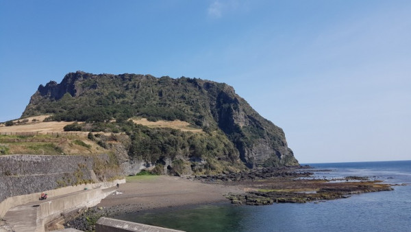 성산일출봉 앞 식당가를 지나 올레길은 다시 해변 길로 향했다. 해변 길로 접어들어서도 계속 성산일출봉의 위엄을 볼 수 있었다. 성산항에서는 일출봉의 왼쪽을, 해변에서는 일출봉의 오른쪽을 볼 수 있다. 일출봉 오른쪽 수마포 해변에서는 일제가 만든 진지 동굴이 여기저기 보였다. 일제가 전쟁을 치르기 위해 제주의 자연을 훼손시킨 흔적이 고스란히 남아 있었다.