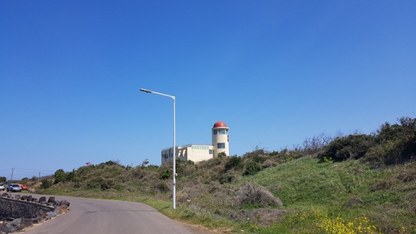 성산읍이 눈에 들어오자 올레길은 직선 도로로 이어지지 않고 언덕 위 등대 모양의 건물을 놓고 삥 둘러 갔다. 등대 모양의 건물은 오조 해녀집이다. 오조 해녀집은 달리 2층 높이의 현대식 건물이고 부지도 꽤 넓어 보였다.