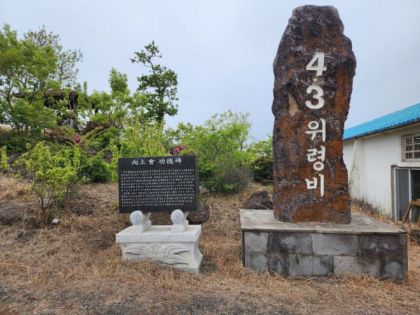 무릉 마을 입구 어귀에 4.3 위령비가 서 있다. 평화롭고 한적한 이곳에도 4.3의 아픈 흔적이 남아있다. 1948년 4.3 사건 당시 동네 청년 5명이 마을 입구 왕개 동산에서 희생되었는데 1959년 동년 청년 모임인 향상회에서 1959년 동산을 매입해 추모공원을 조성했다고 한다. 당시 18세 이상 23세 향상회 청년 회원들이 어른들이 망설였던 일을 앞장서서 해냈다.