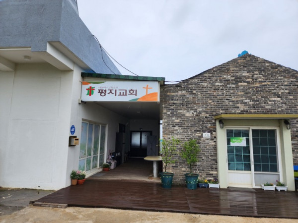 마을 명지교회 앞에서 올레길을 만났다. 명지교회는 크지 않고 아담한 시골 동네 교회다. 누구라도 문을 열고 방문할 수 있는 동네 사랑방처럼 아늑해 보였다.