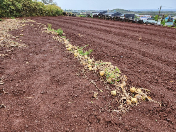 녹남봉에서 내려오니 너른 밭에 수확이 끝났지만, 양파가 널브러져 있다. 일전에 제주 토박이 아저씨한테 들은 이야기가 생각났다. 제주 사람들은 다른 사람들이나 동물들을 위해 밭작물을 다 수확하지 않고 일부를 남겨둔다는 아름다운 풍속을 지니고 있다.