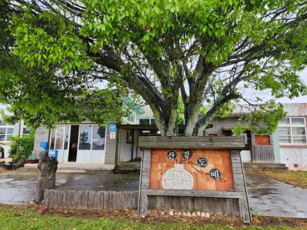 12코스는 『무릉생태학교』에서부터 시작한다. 생태학교는 폐교에 자리를 잡아 교실 건물과 운동장을 개조해 활용하고 있다. 시작점 스태프를 찍자마자 가랑비가 내렸다. 배낭에서 우의를 꺼내 입고 올레길에 본격적으로 나섰다.