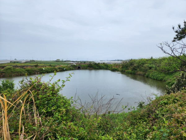 올레길은 도원 연못 옆길로 이어진다. 둑길로 올라서니 길 양쪽으로 연못이 보였다. 밭이 많은 이 지역에 큰 웅덩이를 파서 물을 보관해 농업용수로 사용하고 있다.