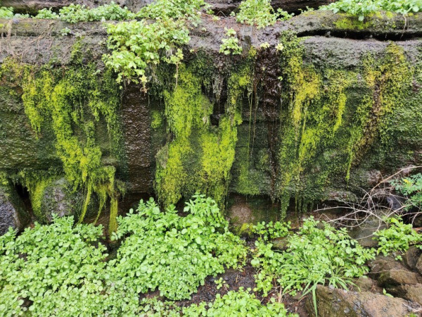 올레길은 엉알길을 따라 지구내 포구로 이어진다. 엉알은 큰 바위, 낭떠러지 아래라는 뜻으로 엉알길 절벽은 세월의 흐름에 따라 층층이 화산쇄설암층을 이루고 있다. 절벽 아래 화산재 지층과 현무암 사이에는 이끼와 양서류 식물이 산재해 있어 태곳적 모습을 간직하고 있다.