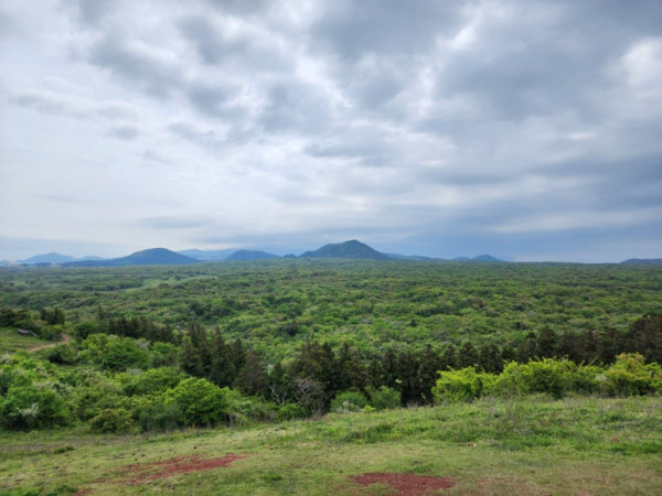 14-1 코스 문도지 오름 정상에서 한라산까지 펼쳐져 있는 장대한 숲을 바라보니 가슴이 탁 트이고 황홀하기까지 했다. 내 자신이 대자연 속에 파묻혀 있어 일순간 주변과 혼연일체가 된 느낌이 들었다. 오랜만에 느껴보는 평안함에 그냥 이곳에서 계속 머물고 싶었다.